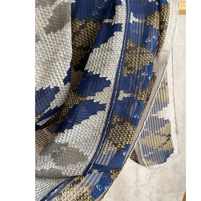 روسری آبی جین پاپیون سفید