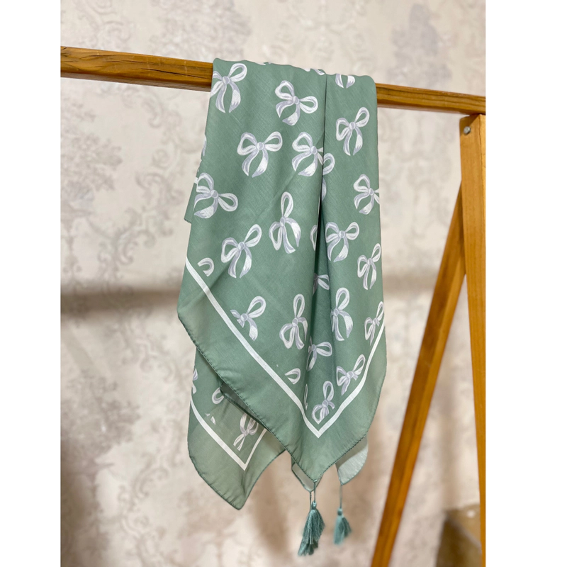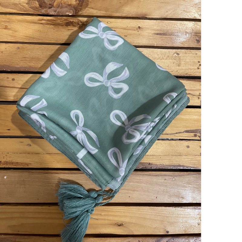 روسری نخی منگوله دار (سبز یکروشن تر از دوهست)