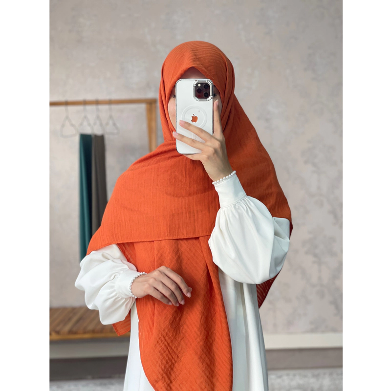 روسری وال نخی راه راه دوردوخت شده.رنگنارنجی خوش رنگ تر از عکس هست